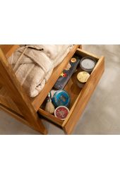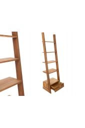 Scala porta tutto con 5 ripiani e cassetto di base in Teak naturale di recupero trattato.