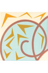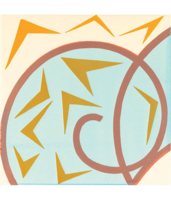 Piastrella realizzata con biscotto industriale totalmente decorata a mano su fondo bianco panna, formato 20x20 spessore 1 cm.