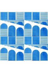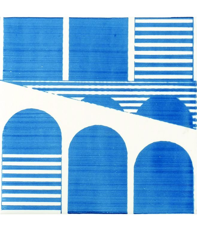 È il frutto del lavoro di Francesco Rizzo stimolato dall’architettura tipica di questi borghi. Tutti i disegni sono monocromatici, nei toni del blu, ma l’alternanza tra il pieno, il vuoto e il rigato ne permette la lettura, nella sua profondità.