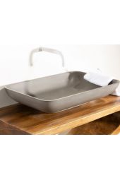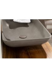Lavandino cemento e resina con copri piletta coordinato. Lievi variazioni di colore, ombre, microfori o piccoli segni sono naturali caratteristiche del materiale. CP950COM