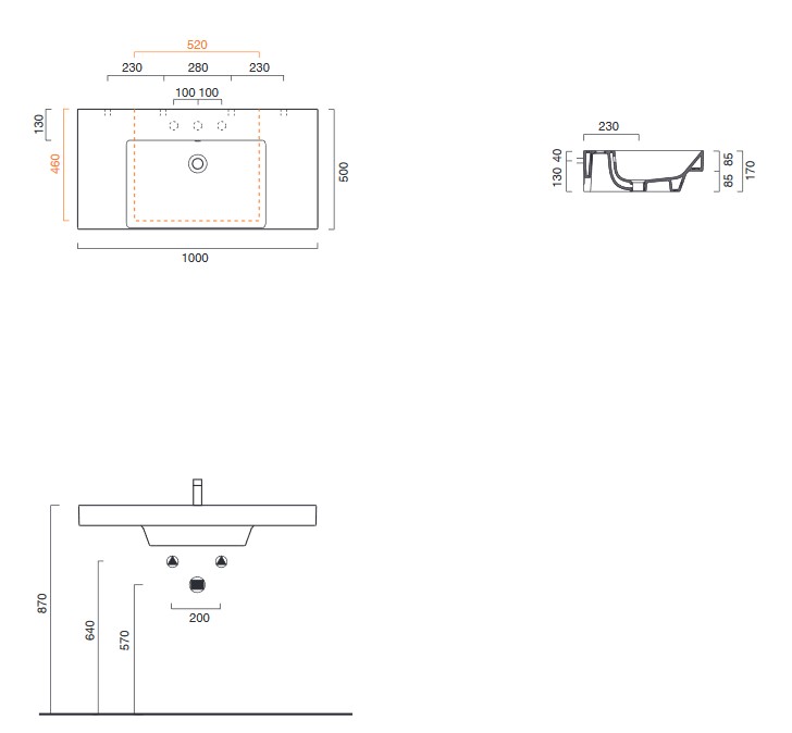 Lavabo per installazione sospesa, semincasso o su mobile.
