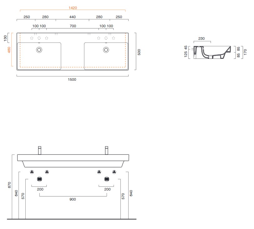 New Zero Piano Lavabo Doppio 150 CATALANO