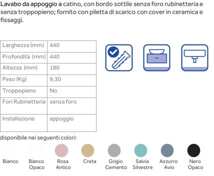 -25% Lavabo d'appoggio 44x44 NOEMI Cer Dolomite Prezzo regolare 248,88 € -25% Prezzo 186,66 € iva incl.
