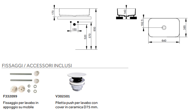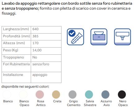 -25% Lavabo d'appoggio 62x38 NOEMI Cer Dolomite Prezzo regolare 298,90 € -25% Prezzo 224,18 € iva incl.