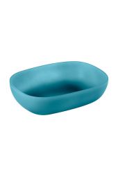 Lavandino da appoggio forma di Vasca. Realizzato in composto di resina e polveri minerali a basso spessore. Colore bianco e piletta ad uso espositivo inclusa Misure-Size 55 x 40,5 – h 16 cm