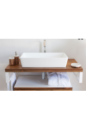 Lavandino da appoggio rettangolare con bordi inclinati a basso spessore e scarico piletta nascosto…