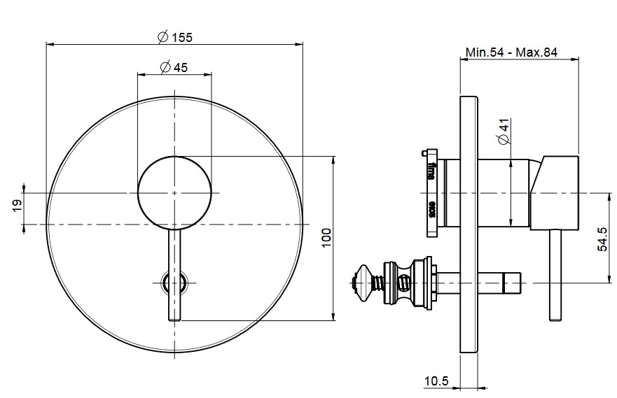 SPILLO TECH Parte esterna per miscelatore incasso Doccia a 2 Uscite FIMA