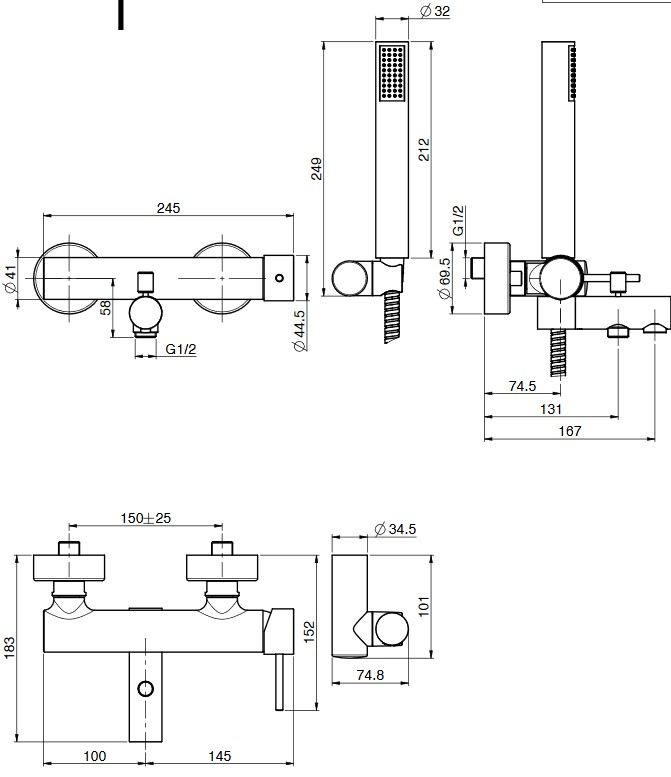 Spillo Tech F3034 Miscelatore Vasca esterno con doccia