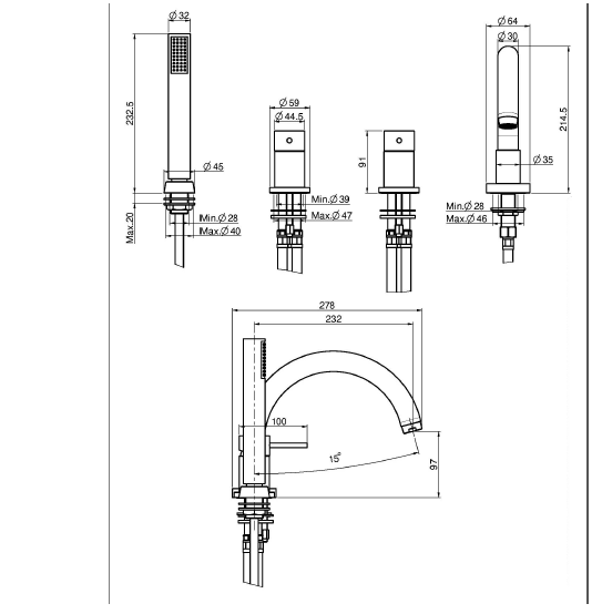 SPILLO STEEL Gruppo bordo vasca INOX FIMA